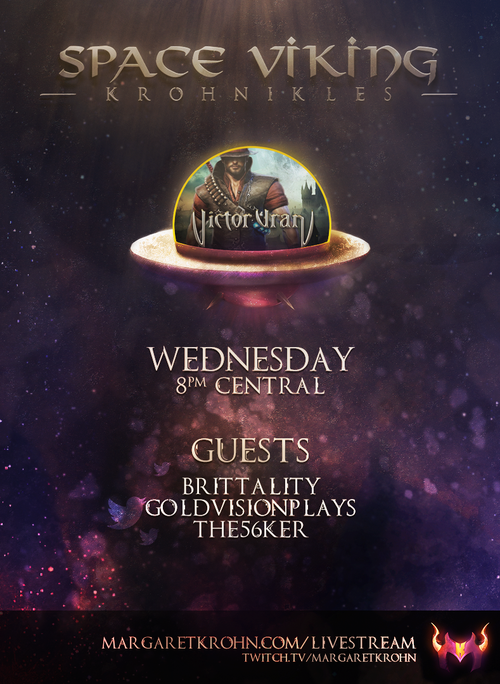 Space Viking Krohnikles (SVKrohn) is a web-series that journeys into a new virtual world every week on Wednesdays at 8PM Central on Twitch.TV/MargaretKrohn, covering first impressions, gameplay and afterthoughts. Each episode starts with a Weekly Update, providing viewers with an insight into the mind(s) of that week's guest(s), recently played games, and important gaming news.
